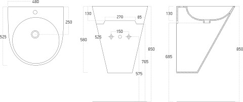 Раковина подвесная керамическая полукруглая 47х65 см белая Stworki 6065-KL