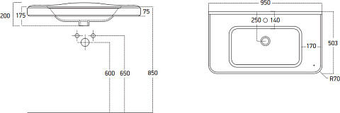 Рукомойник встраиваемый керамический прямоугольный 28х51 см белый Stworki 3045-KL