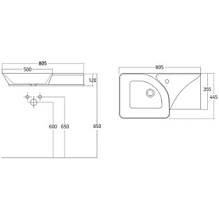 Раковина фарфоровая левая 37х23 см белая Bocchi Milano 1418 1418-001-0126