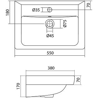 Раковина подвесная керамическая прямоугольная 34х44 см белая Stworki "Дублин" K3501-0455-001-1-0000