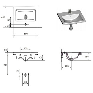 Раковина накладная прямоугольная фарфоровая белая Point "Меркурий 50" PN43832