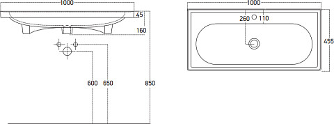 Раковина накладная керамическая прямоугольная 47х100 см белая Stworki 10100-KL