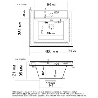 Раковина накладная из литьевого мрамора прямоугольная 35х40 см белая Misty "Алиса" 4627173210287