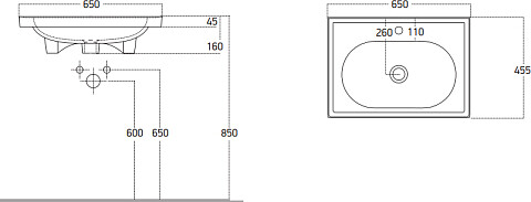 Раковина накладная керамическая прямоугольная 48х66 см белая СаНта "Оскар 65"