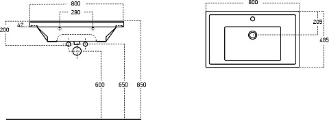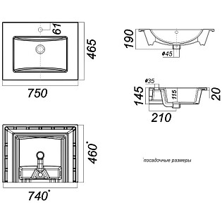 Раковина накладная керамическая прямоугольная 47х75 см белая Sanita Quadro-75 QDR75SLWB01
