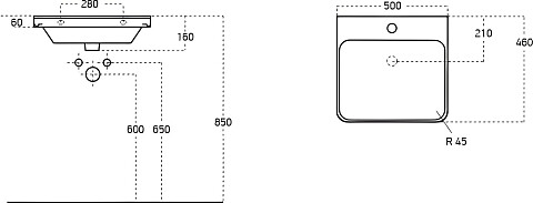 Раковина накладная прямоугольная белая Roca Mila 50 32700B000