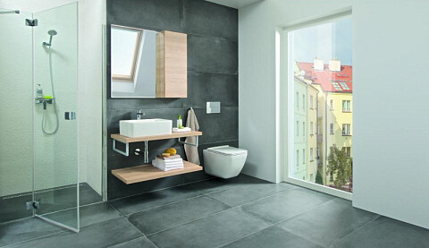 Раковина накладная керамическая прямоугольная 47х61 см антрацит Stworki "Гриндстед" 43061-112-KL
