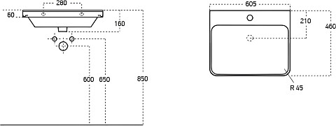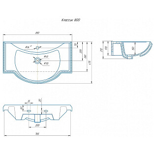 Раковина накладная керамическая крыло справа 45х81 см белая Kirovit "Фостер-800" 4640021065198