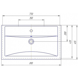 Раковина накладная из литьевого мрамора прямоугольная 45х80 см белая СаНта Classic 80