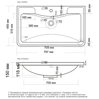Умывальник мебельный белый Dreja LUXURY 70 11070-KL