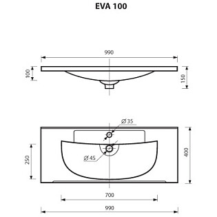 Раковина накладная из литьевого мрамора прямоугольная 40х99 см белая Misty Evva-100 DМ Р-Евв14100-Д