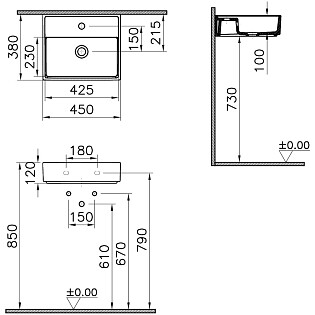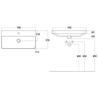 Раковина накладная фарфоровая прямоугольная 38х45 см белая Vitra ArchiPlan 7400B003-0001