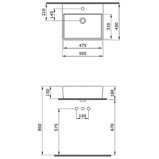 Раковина накладная керамическая прямоугольная 45х92 см белый Днепрокерамика "Этна" УТ000015671