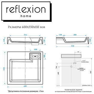 Раковина для установки над стиральной машиной 60х55 см белая Reflection Delta RX6055DE