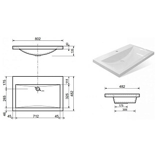 Раковина мебельная прямоугольная 80 см белая Dreja Q 192185