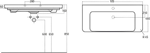 Раковина накладная из доломита прямоугольная 46х100 см белая Misty "Атлантик" 4623723685680