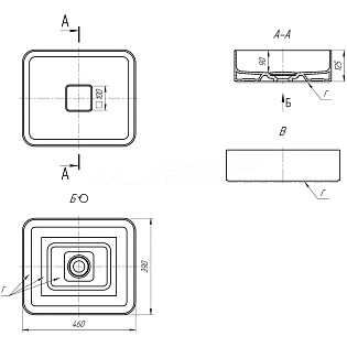 Раковина накладная фарфоровая прямоугольная 40х50 см серая Aquatek "Вега" AQ5506-MG