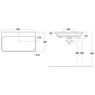 Раковина накладная фарфоровая прямоугольная 46х80 см белая Roca Victoria-N Unik 32799C000