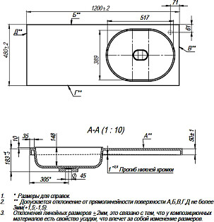 Раковина накладная из искусственного мрамора левая 48х110 см белая Marko "Камила" 4627173210010