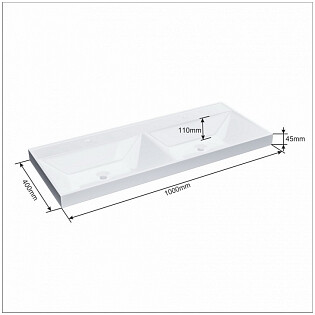 Раковина двойная накладная из литого мрамора 40х100 см белая СаНта "Юпитер 100"
