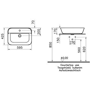 Раковина накладная фарфоровая прямоугольная 43х60 см белая Vitra Geo 7426B003-0001