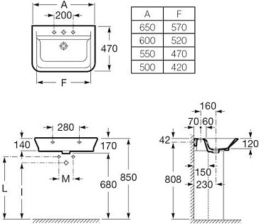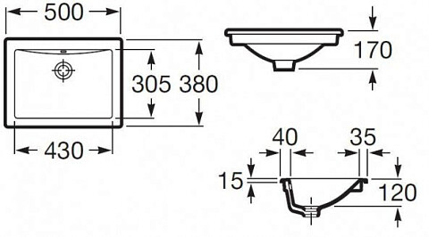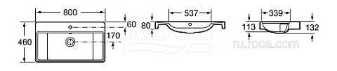Раковина встраиваемая фарфоровая прямоугольная 38х50 см белая Roca Diverta 327114000