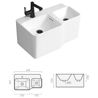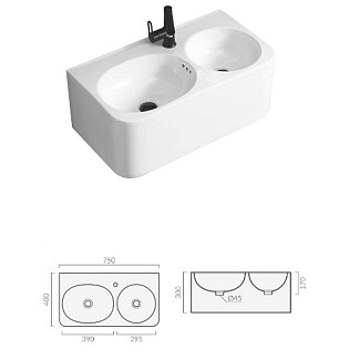 Раковина подвесная двойная фарфоровая 37х65 см белая Cerutti SPA Double Bella CT9703