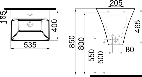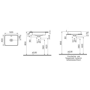Раковина-чаша фарфоровая прямоугольная 50х40 см белая VitrA Metropole 7534B003-0673