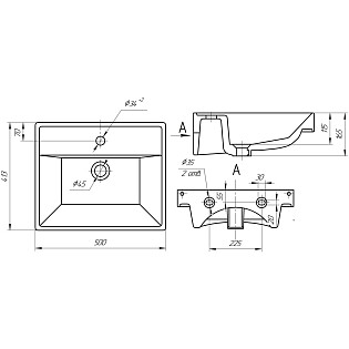Раковина накладная фарфоровая 50 см белая Diwo Moduo 50 Square 63570