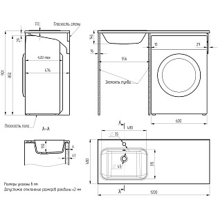 Раковина мебельная на стиральную машину левая белая 120 см Dreja Wing 100120L