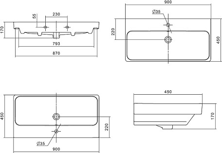 Раковина мебельная фарфоровая 90 см белая Quadro