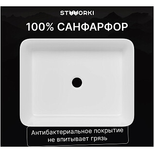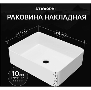 Раковина накладная керамическая прямоугольная 48х55 см белая Stworki 3054-KL