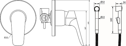 Гигиенический душ со смесителем с внутренней частью Stworki "Ноттвиль" NO-05b