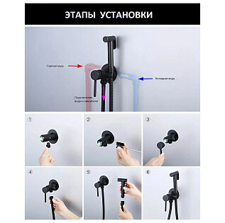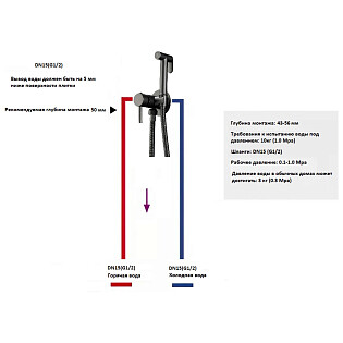 Гигиенический душ с встраиваемым смесителем черный Wasserkraft A71638