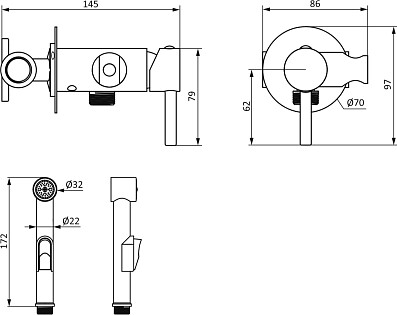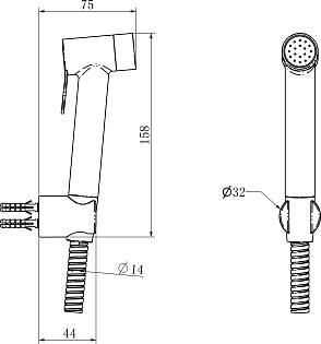Гигиенический душ с держателем и шлангом хром Diwo "Коломна" KL-09cr