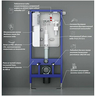 Инсталляция для подвесных унитазов белая, синяя Creto Standart 1.1 INST-CR-1.1