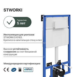 Система инсталляции для унитазов с белой кнопкой смыва Stworki 230824 510163