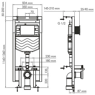 Инсталляция для подвесного унитаза с черной матовой кнопкой Wasserkraft Alme 15TLT.010.ME.MB04