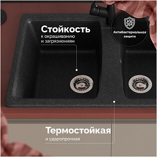 Мойка кухонная из искусственного мрамора двойная черная Domaci "Палермо" PR-770-004