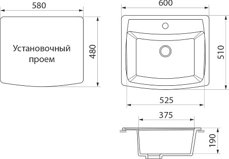 Мойка кухонная из искусственного гранита с крылом черная Domaci "Верона" 61-48 черная