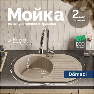 Мойка кухонная из искусственного мрамора с крылом бежевая Domaci "Палермо" PR-650-002