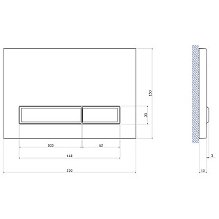 Кнопка смыва для унитаза настенная 15х22 см матовая черная Cersanit Twins 63534