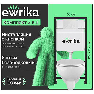 Унитаз подвесной Seramiksan Natura с инсталляцией Ewrika ProLT 0026-2020 и кнопкой смыва Ewrika 0051