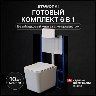 Унитаз подвесной Stworki "Молде" S23401WH с инсталляцией 510162 и кнопкой 230824