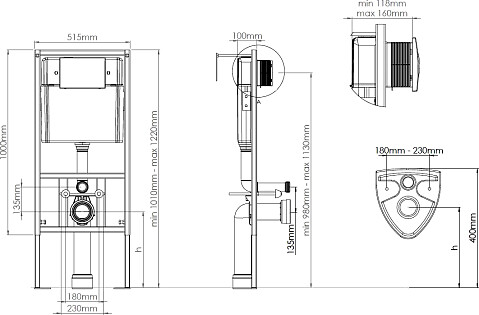 Унитаз белый VitrA Shift 7742B003-0075 с инсталляцией Diwo и белой кнопкой 7310