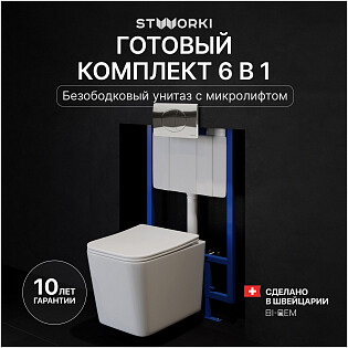 Унитаз подвесной Stworki "Молде" S23401WH с инсталляцией 510162 и кнопкой 230822