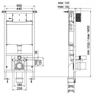 Унитаз подвесной Diwo "Углич" 0710 с инсталляцией 4501, с кнопкой смыва черной 7313