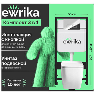 Унитаз подвесной Aqueduto Ovo OVO0110 с инсталляцией Ewrika ProLT 0026-2020, с кнопкой белой 0042