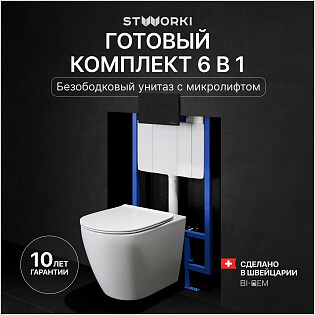 Унитаз подвесной Stworki "Готланд" S13401WH с инсталляцией 510162 и кнопкой "Хельсинки" 500471