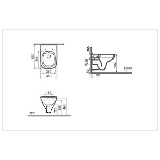 Унитаз подвесной с инсталляцией и кнопкой смыва хром Vitra S20 9004B003-7207